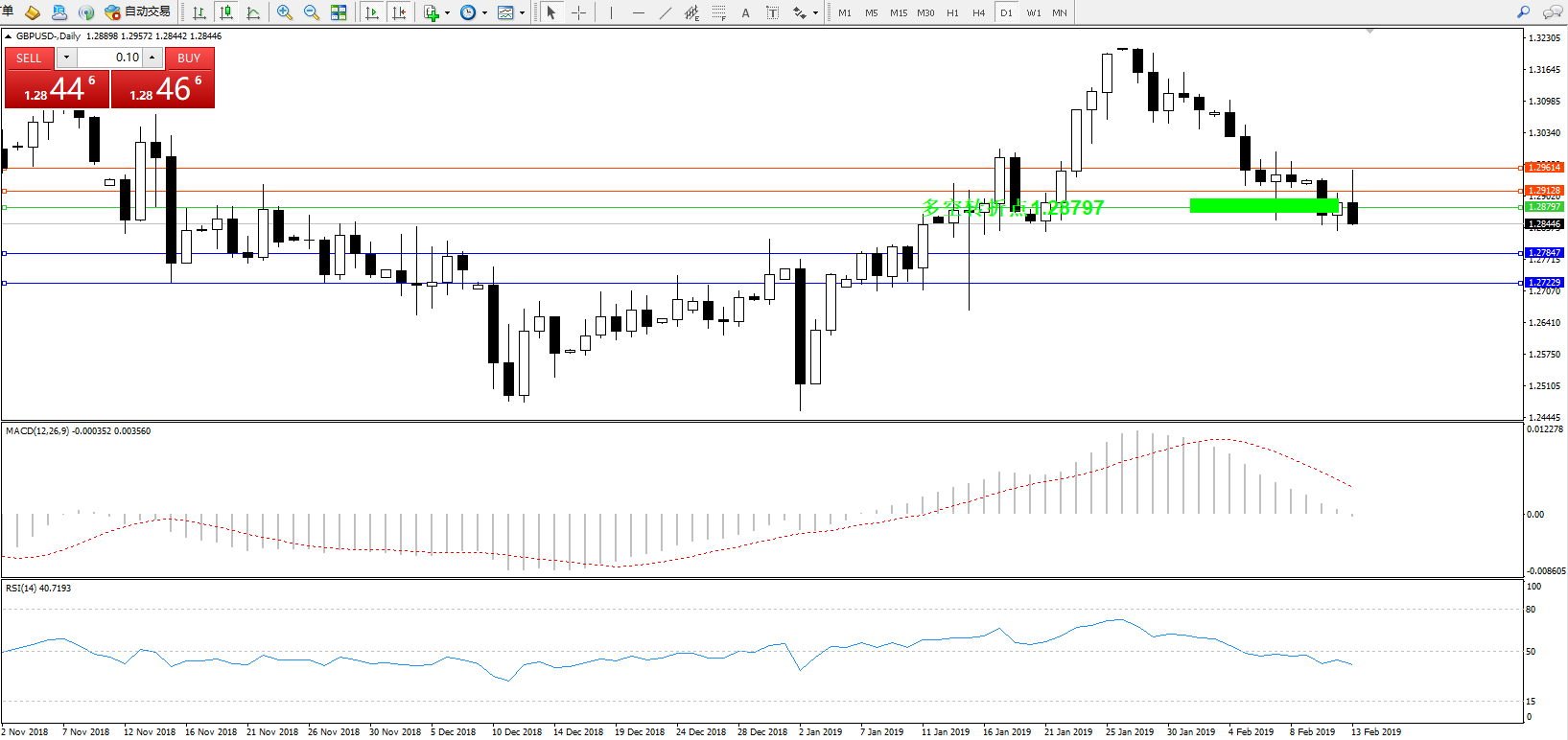 交易策略:1.28797下方看跌,目标1.27847、1.27229