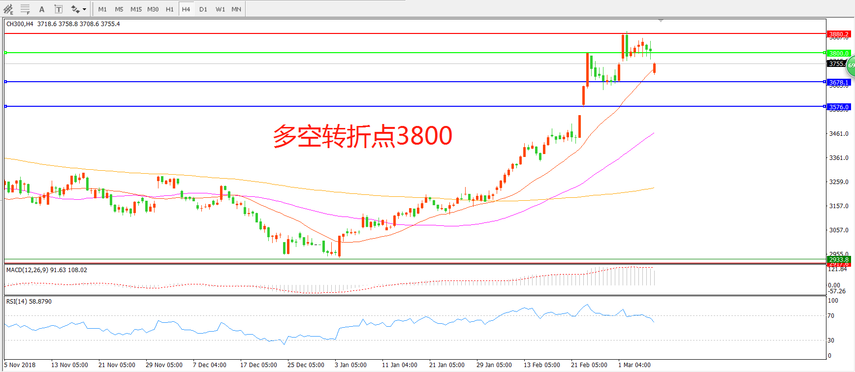 交易策略:在3800.00之下看跌,目标3678.00  3576.00