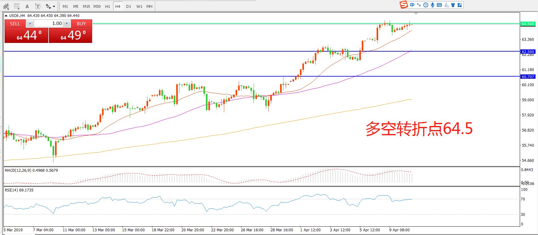 多空转折点:64.50