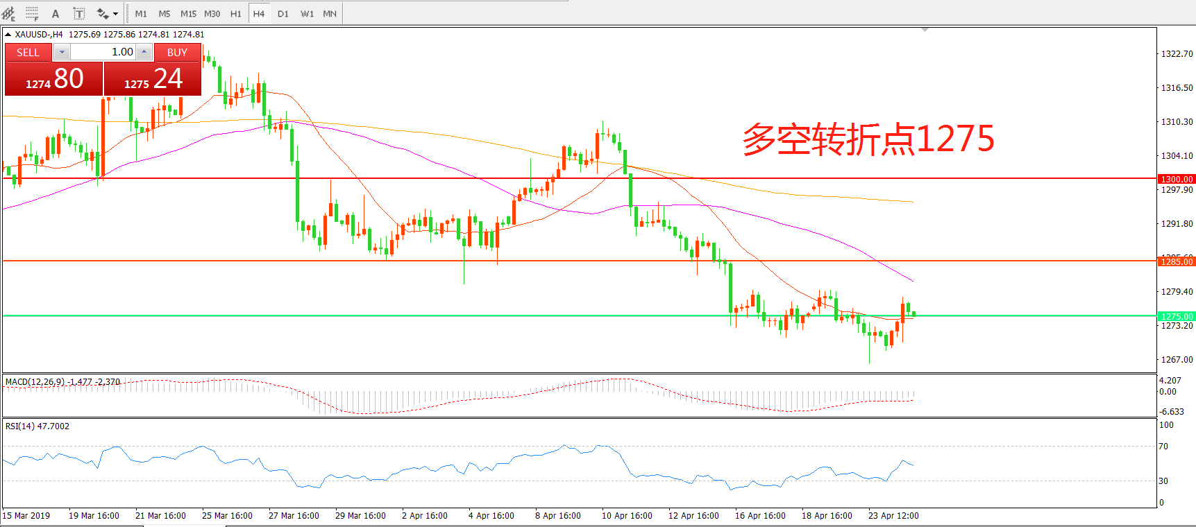 多空转折点:1275.00