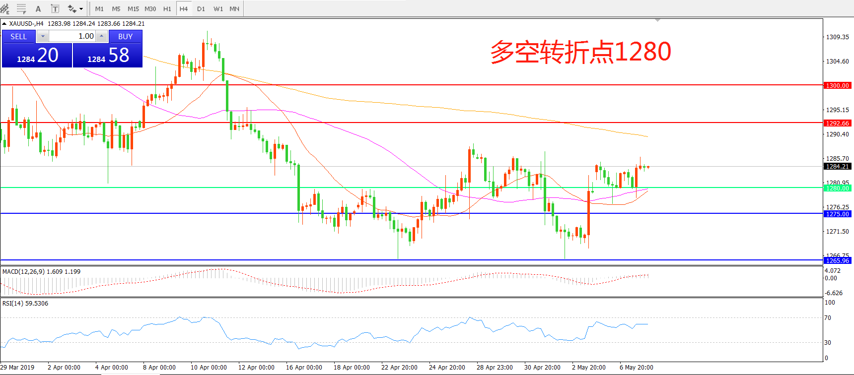 受欧美债券息差、避险需求以及欧盟经济预期报告的共同提振,美元指数持续上涨,并刷新日高至97.75,金价承压,小幅下行,收报1284.1美元/盎司,站稳1280之上。尽管此前中美贸易紧张态势重燃对全球经济成长前景的担忧,且美伊对峙升级朝军事领域蔓延。但中方团队本周仍将赴美磋商,抑制了避险情绪的进一步蔓延,重点关注中美贸易谈判结果。