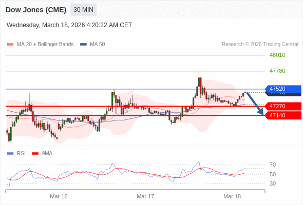 在 47520 之下,看跌,目标价位为 47270 ,然后为 47140 。
