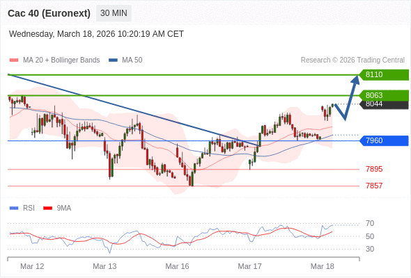 法国CAC指数期货 (Euronext) (H6) 当日内: 目标位为8063。