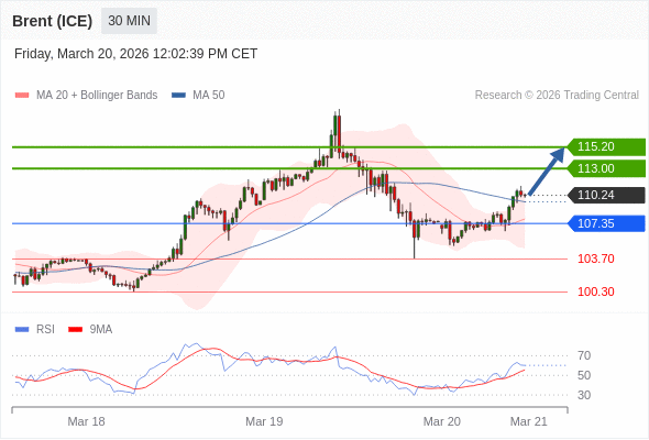 在 107.35 之上,看涨,目标价位为 113.00 ,然后为 115.20 。