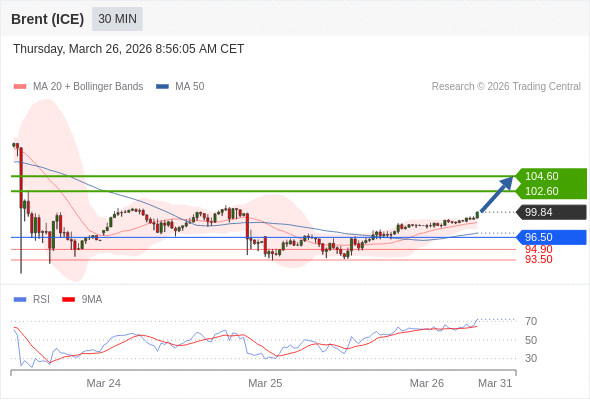 在 96.50 之上,看涨,目标价位为 102.60 ,然后为 104.60 。