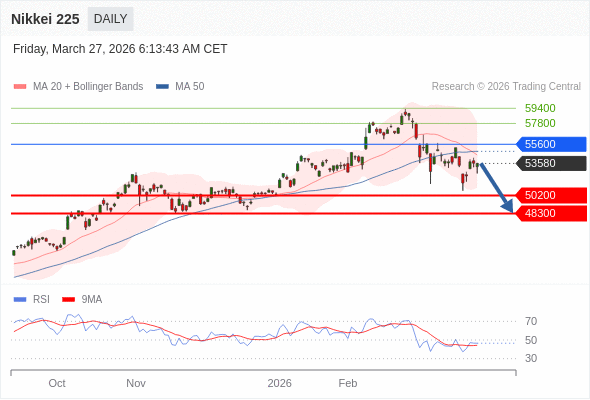 Nikkei 225 短线: 短期关键阻力位在55600。
