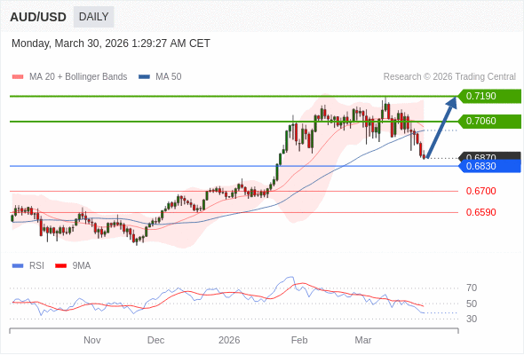 在 0.6830 之上,看涨,目标价位为 0.7060 ,然后为 0.7190 。