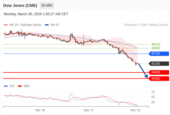 在 45700 之下,看跌,目标价位为 44690 ,然后为 44360 。