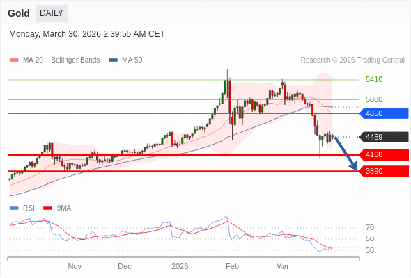 交易策略: 在 4850 之下,看跌,目标价位为 4160 ,然后为 3890 。
