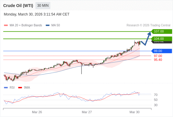 在 99.00 之上,看涨,目标价位为 104.00 ,然后为 107.00 。