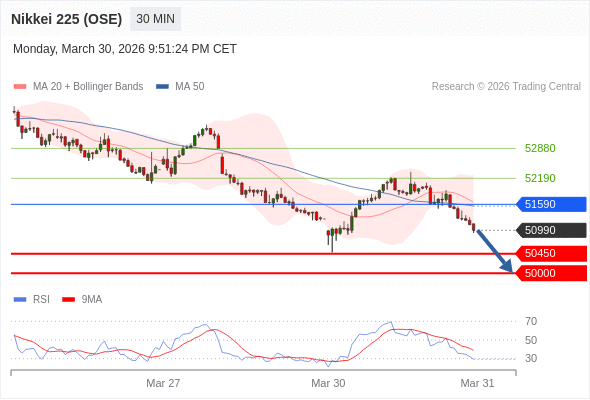 在 51590 之下,看跌,目标价位为 50450 ,然后为 50000 。