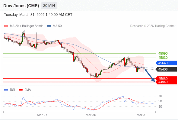 在 45640 之下,看跌,目标价位为 45060 ,然后为 44940 。