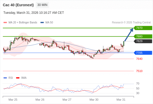 在 7705 之上,看涨,目标价位为 7880 ,然后为 7970 。