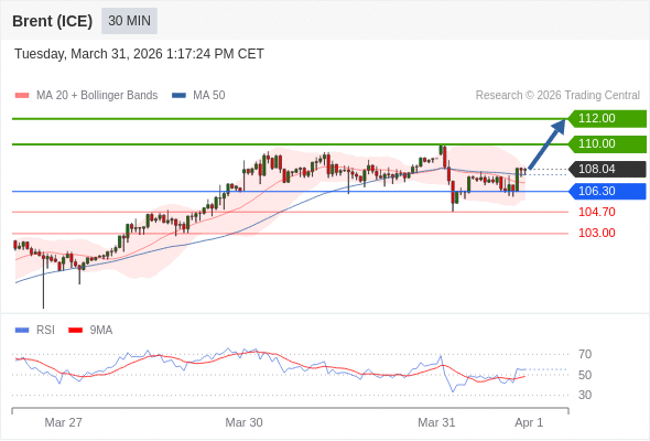 交易策略: 在 106.30 之上,看涨,目标价位为 110.00 ,然后为 112.00 。