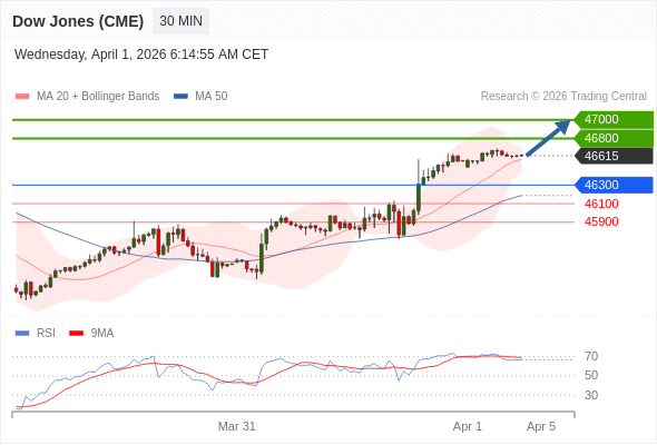 在 46300 之上,看涨,目标价位为 46800 ,然后为 47000 。