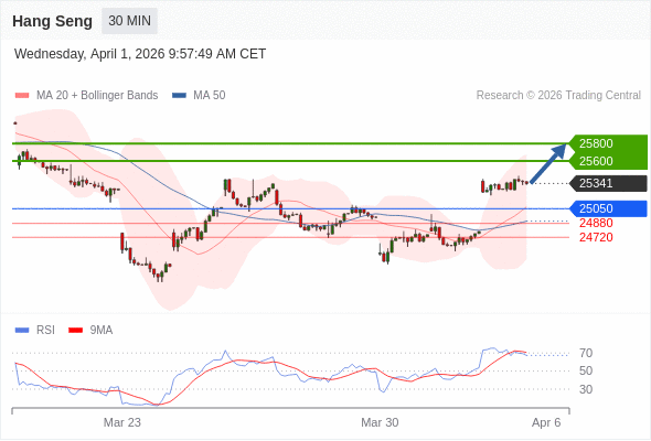 在 25050 之上,看涨,目标价位为 25600 ,然后为 25800 。