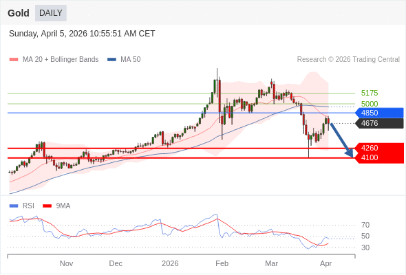 在 4850 之下,看跌,目标价位为 4260 ,然后为 4100 。