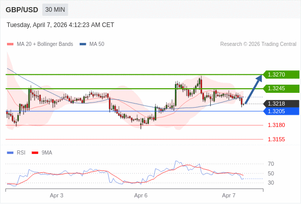 在 1.3205 之上,看涨,目标价位为 1.3245 ,然后为 1.3270 。
