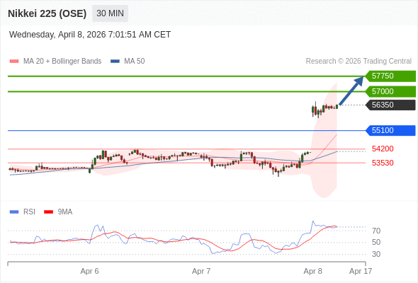 在 55100 之上,看涨,目标价位为 57000 ,然后为 57750 。