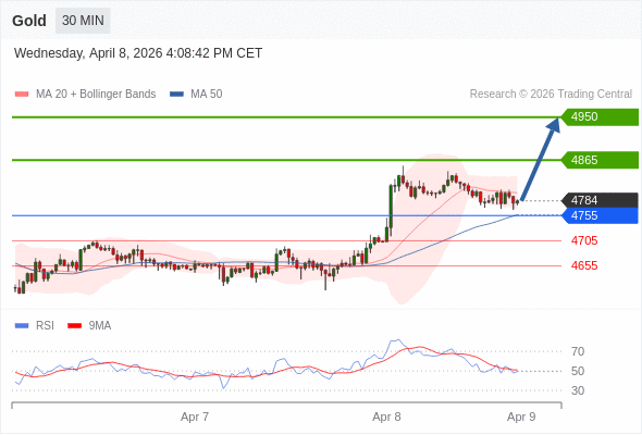交易策略: 在 4755 之上,看涨,目标价位为 4865 ,然后为 4950 。