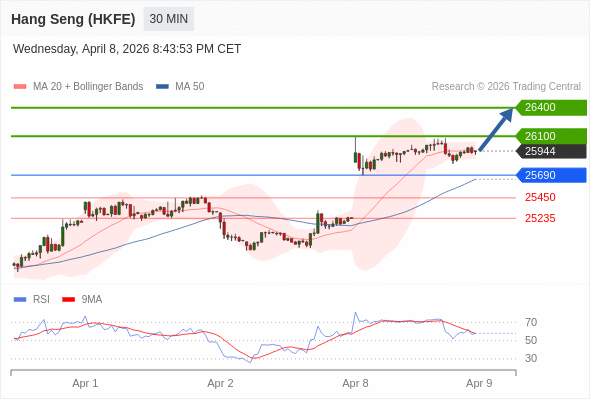 在 25690 之上,看涨,目标价位为 26100 ,然后为 26400 。