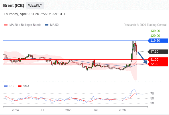 交易策略: 在 119.50 之下,看跌,目标价位为 81.00 ,然后为 72.00 。