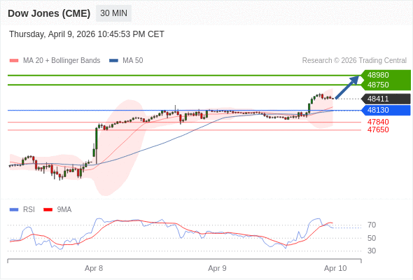 在 48130 之上,看涨,目标价位为 48750 ,然后为 48980 。