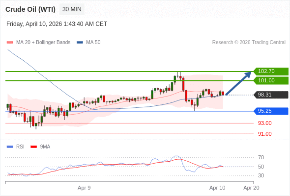 在 95.25 之上,看涨,目标价位为 101.00 ,然后为 102.70 。