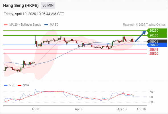 在 25800 之上,看涨,目标价位为 26100 ,然后为 26250 。