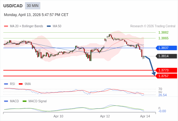 交易策略: 看跌,在 1.3837 之下。