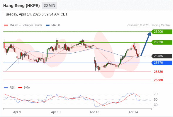 在 25670 之上,看涨,目标价位为 26020 ,然后为 26200 。