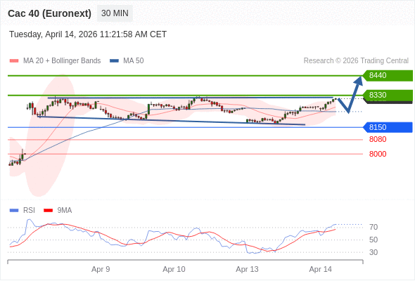 在 8150 之上,看涨,目标价位为 8330 ,然后为 8440 。