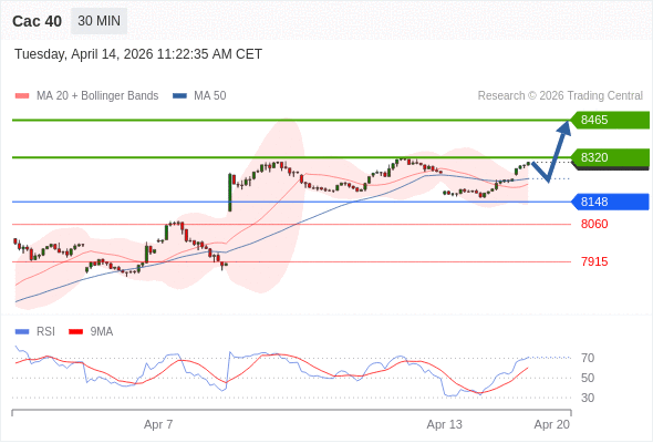 在 8148 之上,看涨,目标价位为 8320 ,然后为 8465 。