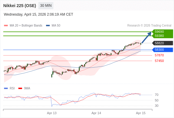 日经225股指期货 (OSE) 当日内: 目标位为59380。