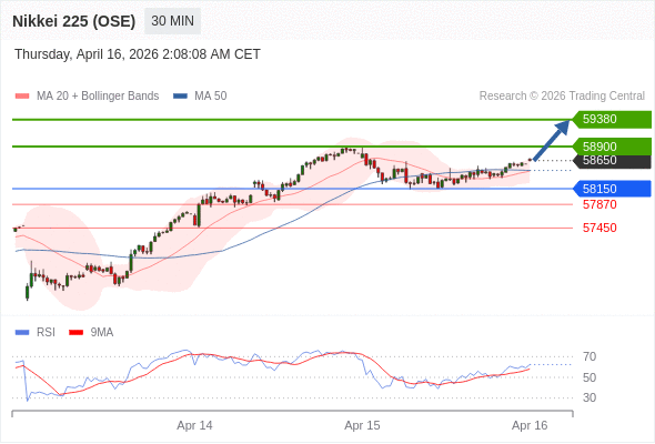 在 58150 之上,看涨,目标价位为 58900 ,然后为 59380 。