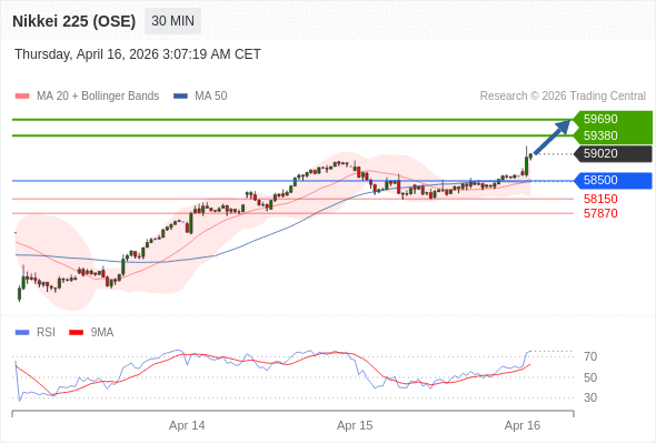 在 58500 之上,看涨,目标价位为 59380 ,然后为 59690 。