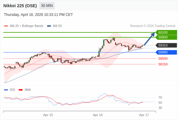 在 58880 之上,看涨,目标价位为 59800 ,然后为 60100 。