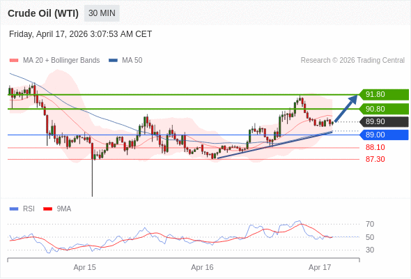 在 89.00 之上,看涨,目标价位为 90.80 ,然后为 91.80 。