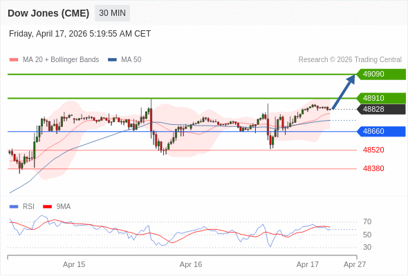 在 48660 之上,看涨,目标价位为 48910 ,然后为 49090 。