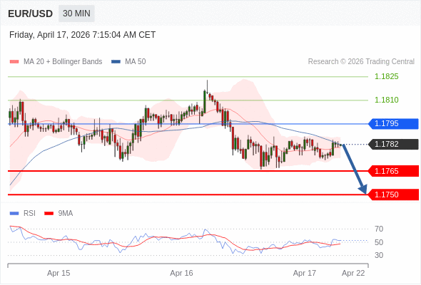 在 1.1795 之下,看跌,目标价位为 1.1765 ,然后为 1.1750 。