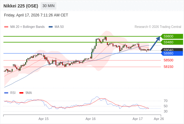 日经225股指期货 (OSE) 当日内: 在58880之上,看涨。