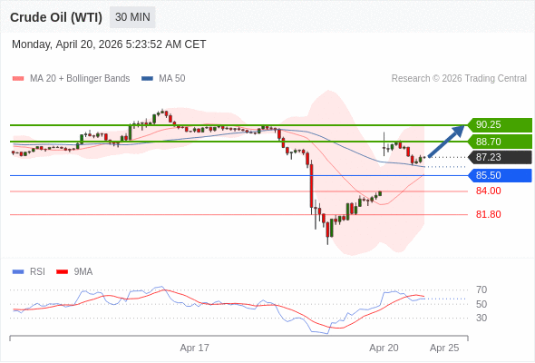 在 85.50 之上,看涨,目标价位为 88.70 ,然后为 90.25 。