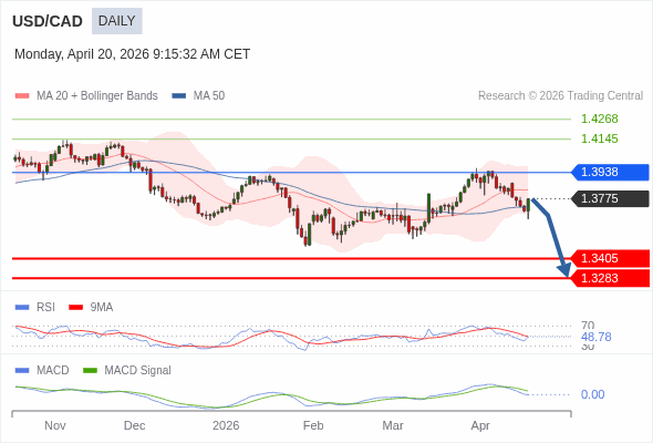 美元/加元 短线 : 逐渐下跌,当 1.3938 阻碍上行,则 1.3283 为目标位。