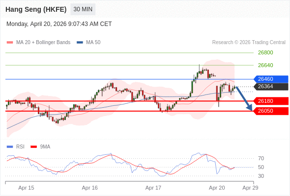 在 26460 之下,看跌,目标价位为 26180 ,然后为 26050 。