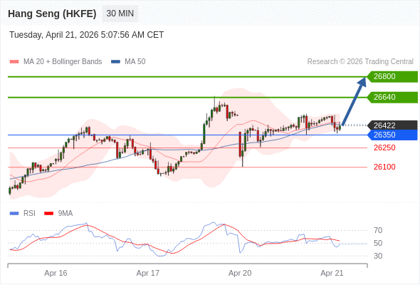 在 26350 之上,看涨,目标价位为 26640 ,然后为 26800 。