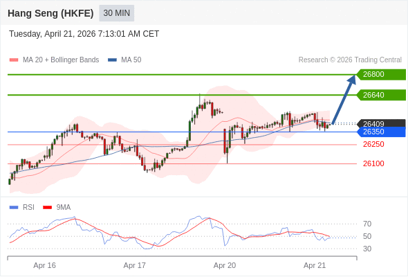 在 26350 之上,看涨,目标价位为 26640 ,然后为 26800 。