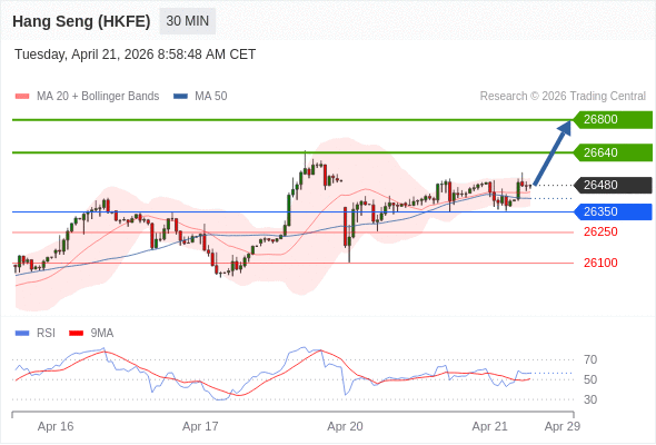 在 26350 之上,看涨,目标价位为 26640 ,然后为 26800 。