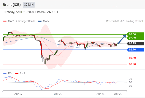 在 92.70 之上,看涨,目标价位为 97.40 ,然后为 98.80 。