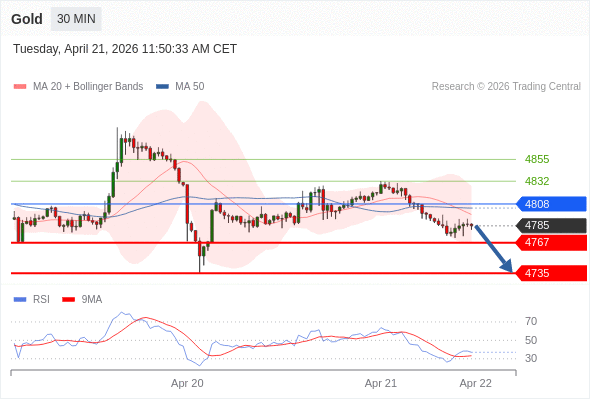 在 4808 之下,看跌,目标价位为 4767 ,然后为 4735 。