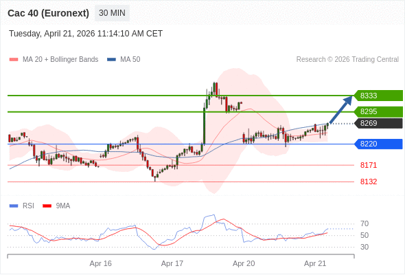在 8220 之上,看涨,目标价位为 8295 ,然后为 8333 。